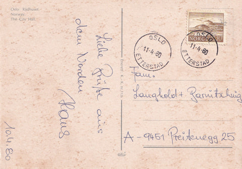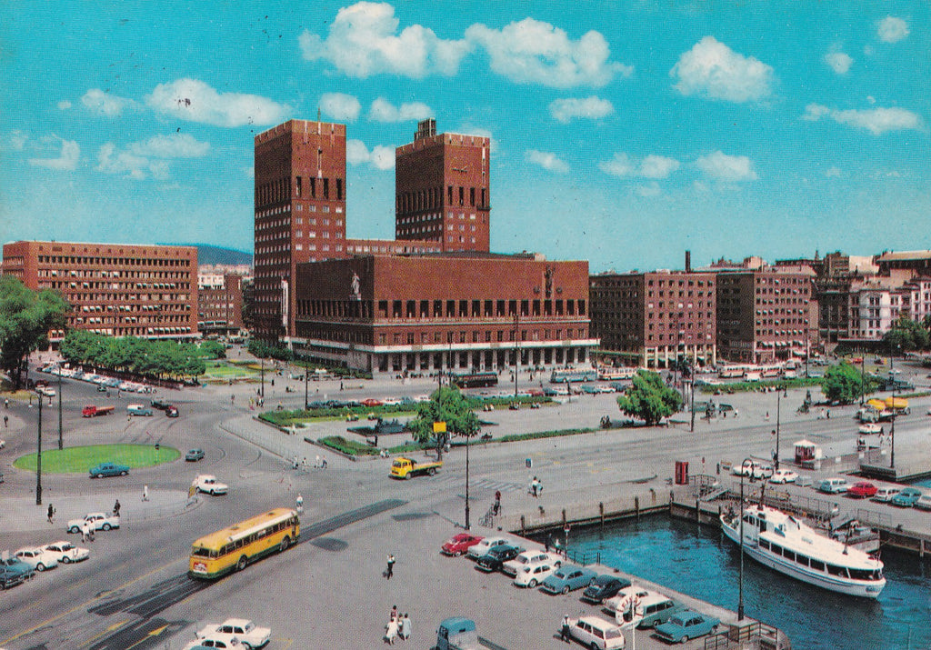 AK Oslo. Radhuset. Gelaufen. Großformat. Zustand: gut, rechtes unteres Eck geknickt.