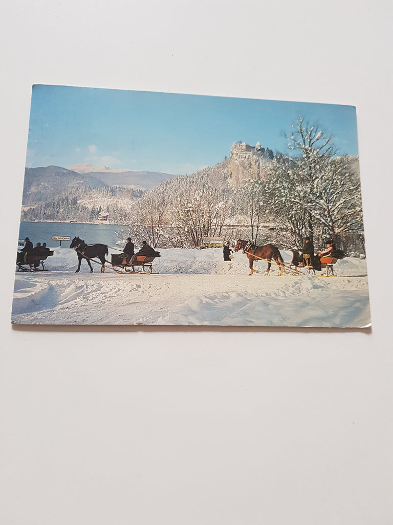 AK Bled v zimi. Gelaufen. Großformat. Zustand: gut, linkes oberes Eck geknickt.