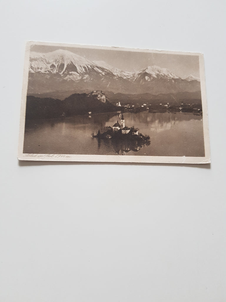 AK Bled. Gelaufen. Kleinformat. Zustand: linkes oberes und am oberen Rand geknickt.