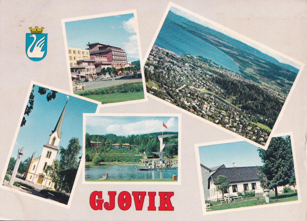 AK Gjövik. Gelaufen. Großformat. Verlag: Aune. Nummeriert: F-5000-1. Zustand: linkes unteres Eck geknickt.