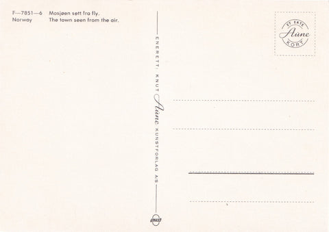 AK Mosjöen sett fra fly. Ungelaufen. Großformat. Verlag: Aune. Nummeriert: F-7851-6. Zustand: gut.