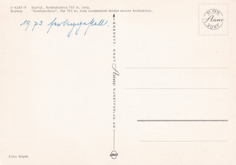 AK Narvik. Rombaksbrua. Ungelaufen. Großformat. Verlag: Aune. Nummeriert: F-4287-9. Zustand: gut.