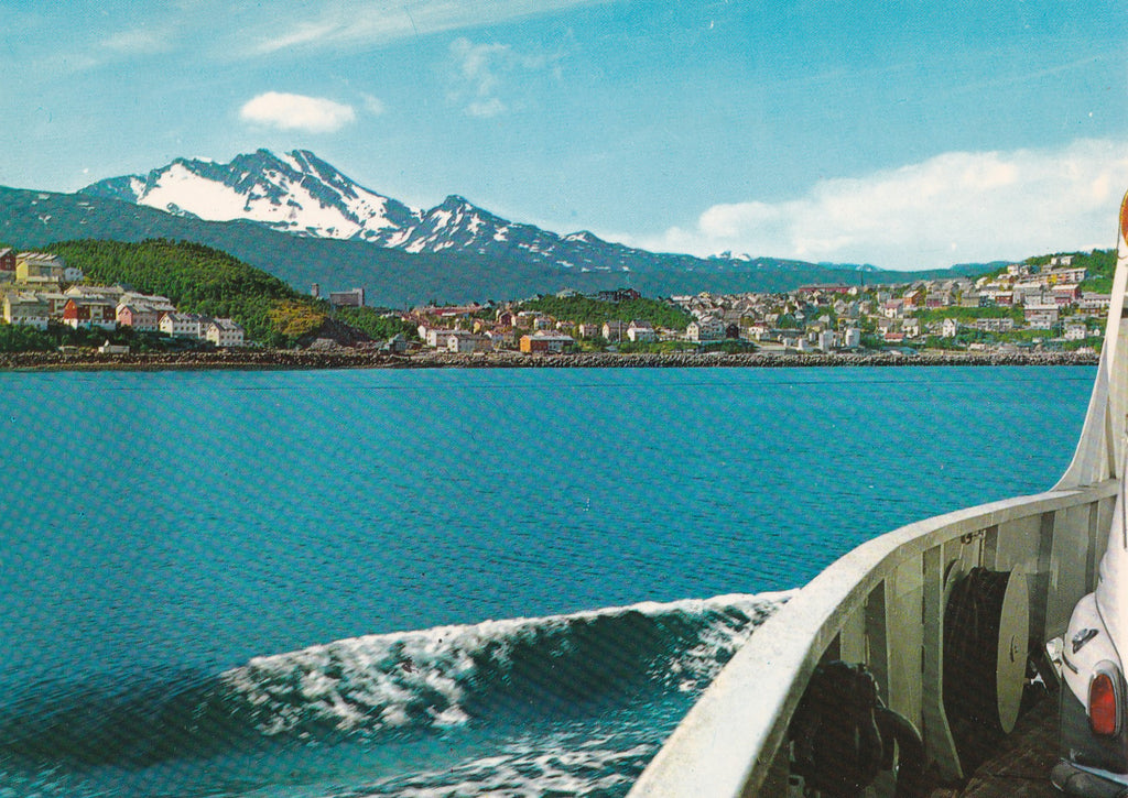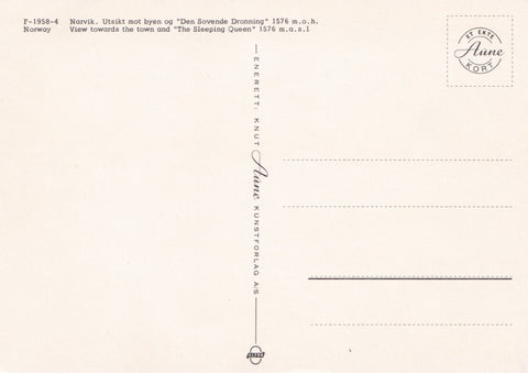 AK Narvik. Utsikt mot byen og Den Sovende Dronning. Ungelaufen. Großformat. Verlag: Aune. Nummeriert: F-1958-4. Zustand: gut.