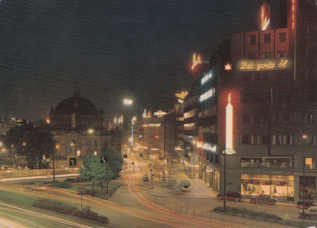 AK Oslo. Byen ved natt. Gelaufen. Großformat. Verlag: Aune. Nummeriert: F-1668-4. Zustand: obere Ecken und am linken Rand geknickt.