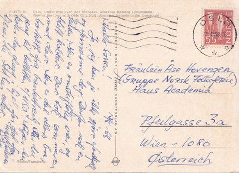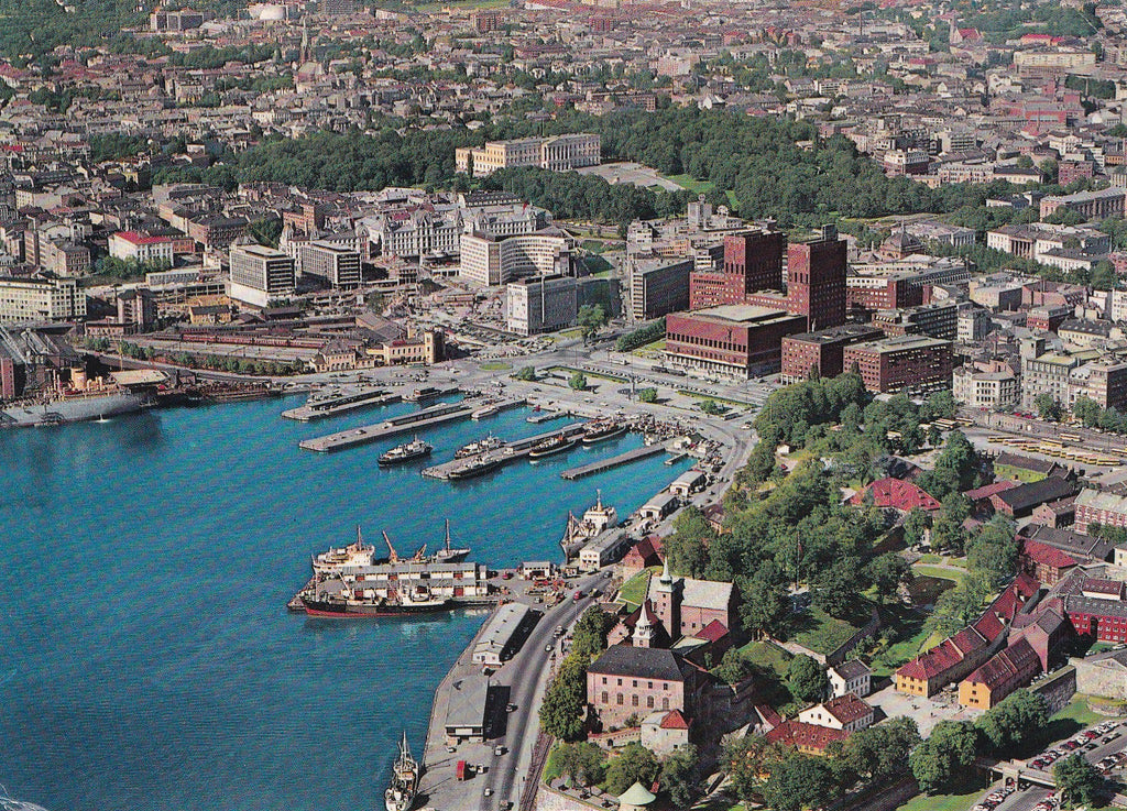 AK Oslo. Gelaufen. Großformat. Verlag: Aune. Nummeriert: F-3575-8. Zustand: Ecken geknickt.