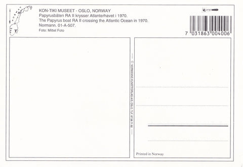 AK Oslo. Norway. The Kon-Tiki Museum. Papyrusbaten RA. Ungelaufen. Großformat. Verlag: Normanns. Zustand: gut.
