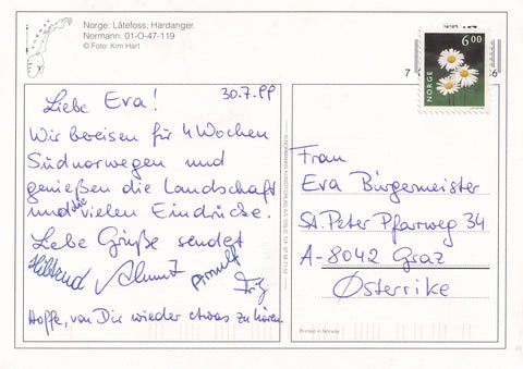 AK Norge: Latefoss, Hardanger. Gelaufen. Großformat. Verlag: Normanns. Zustand: gut.