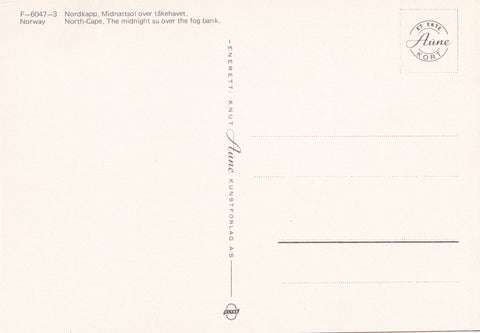 AK Nordkapp. Midnattsol over takehavet. Ungelaufen. Großformat. Verlag: Aune. Nummeriert: F-6047-3. Zustand: gut, rechtes oberes Eck angeknickt.