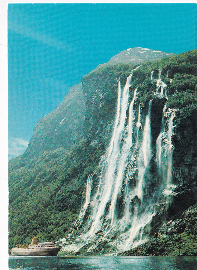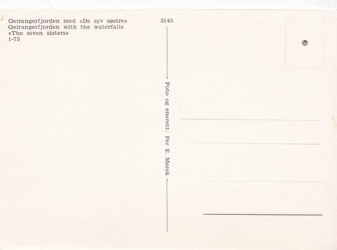 AK Geirangerfjorden med De syv söstre. Ungelaufen. Großformat. Verlag: Merok. Zustand: gut.
