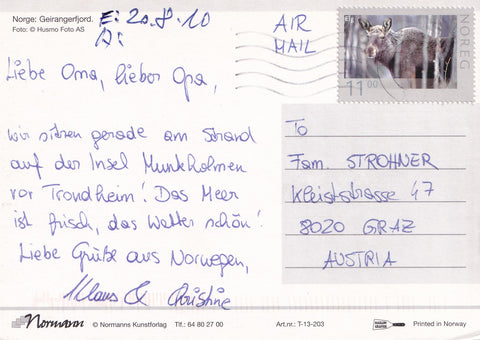 AK Geirangerfjord. Gelaufen. Großformat. Verlag: Normanns. Zustand: gut, linkes unteres Eck geknickt.