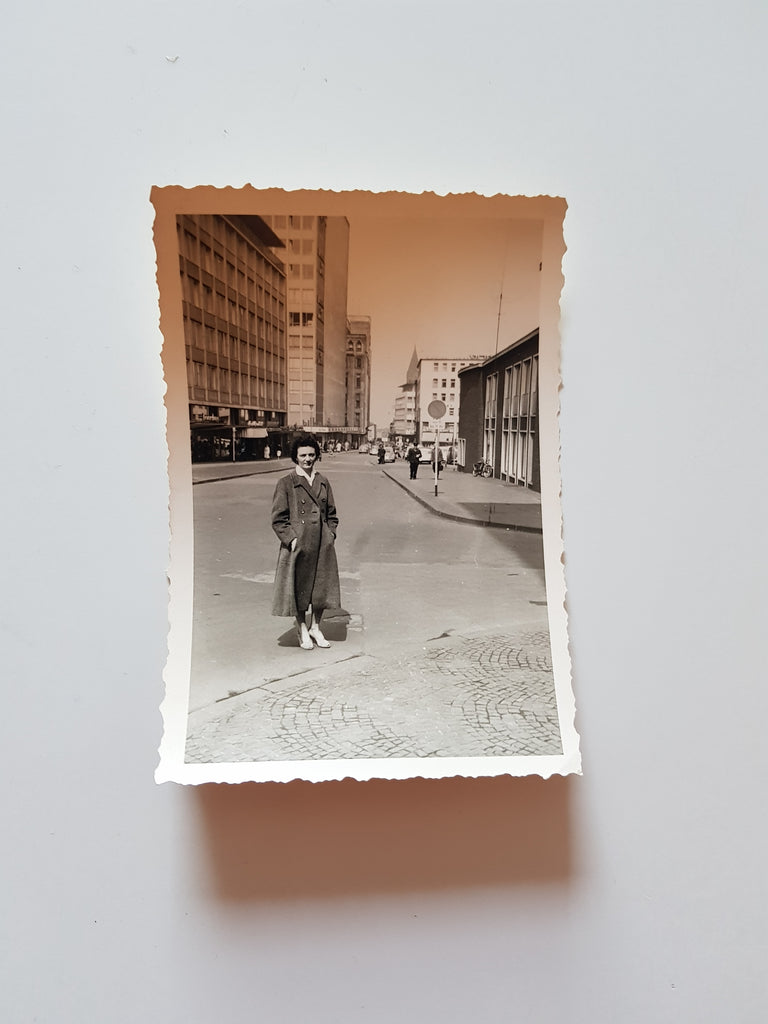SW-Foto Essen, Straßenansicht (1956). Format: 7,1 x 10,2 cm. Zustand: verzogen, rechtes unteres Eck leicht angeknickt, sonst O.k