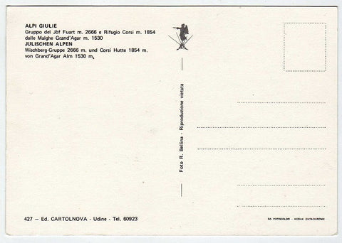 AK Alpi Giulie. Gruppo del Jof Fuart e Rifugio Corsi dalle Malghe Grand'Agar. Ungelaufen. Großformat. Verlag: Ed. Cartolnova, Udine. Nummeriert: 427. Zustand: an Ecken und am Rand leicht angestoßen, sonst O.k.