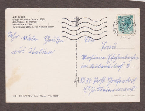 AK Alpi Giulie. Gruppo del Monte Canin dall'Altipiano del Montasio.  Gelaufen 1975. Großformat. Verlag: Cartolnova. Nummeriert: 426. Zustand: linke Ecken geknickt, rechte Ecken angeknickt, fleckig.