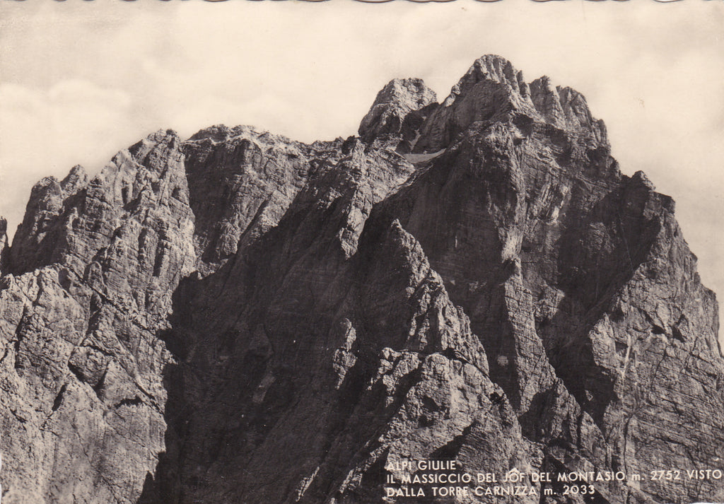 AK Alpi Giulie. Il Massiccio del Jof del Montasio dalla Torre Carnizza. Ungelaufen. Großformat. Verlag: De Monte. Zustand: gut.