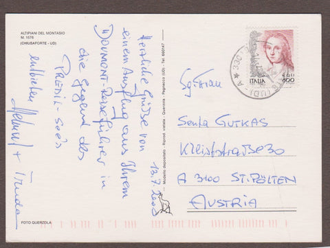 AK Altipiani del Montasio. (Chiusaforte) Gelaufen 2000. Großformat. Verlag: Querzola. Zustand: linkes unteres Eck geknickt, sonst leichte Läsuren.