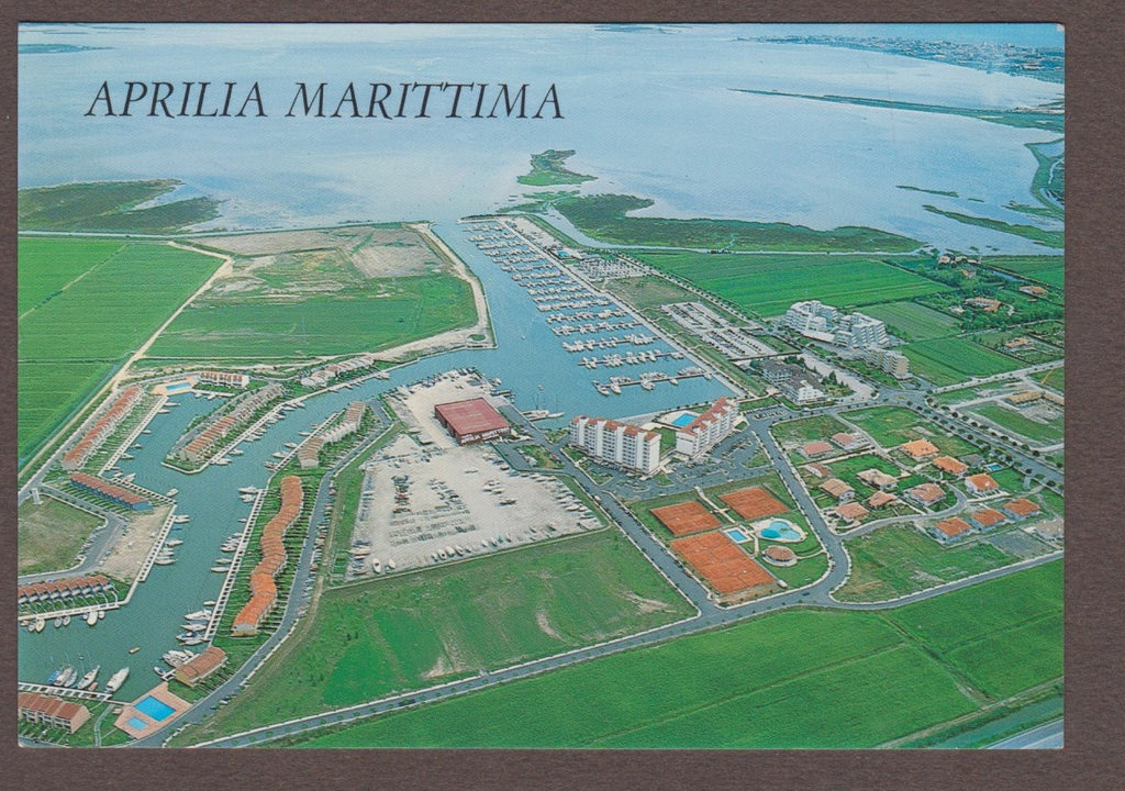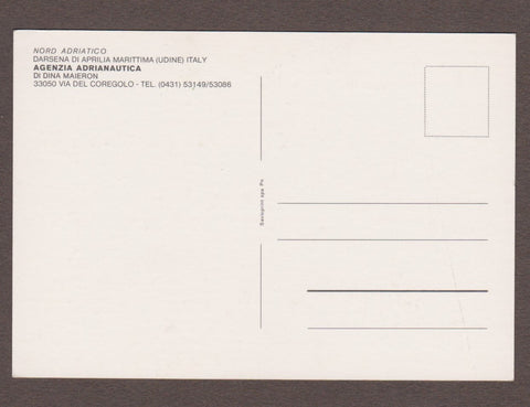 AK Aprilia Marittima. Darsena. Agenzia Adrianautica di Dina Maieron. Via del Coregolo. Ungelaufen. Großformat. Verlag: Savioprint. Zustand: gut, leichte Kratzer.