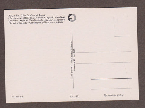 AK Aquileia. Basilica di Poppo. (Cripta degli affreschi) Colonne e capitelli Carolingi. Ungelaufen. Großformat. Verlag: Pro Basilica. Foto Ghedina. Nummeriert: 329.152. Zustand: gut.