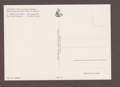 AK Aquileia. Basilica di Poppo Mosaico pavimentale (iniz. IV. secolo) Il Buon Pastore. Ungelaufen. Großformat. Verlag: Pro Basilica. Foto Ghedina. Nummeriert: 329/114. Zustand: gut.