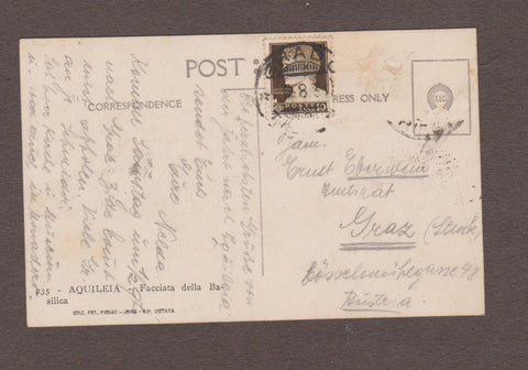 AK Aquileia - Facciata della Basilica. Gelaufen, aber eine Briefmarke wurde entfernt. Kleinformat. Verlag: Pignat, Udine. Nummeriert: 235. Zustand: gut.