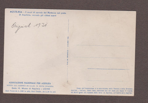 AK Aquileia - I muri di sponda del Natisone nel porto di Aquileia, secondo gli ultimi scavi. Ungelaufen. Kleinformat. Verlag: Assoc. Nazionale per Aquileia. Zustand: gut, linkes unteres Eck angeknickt.