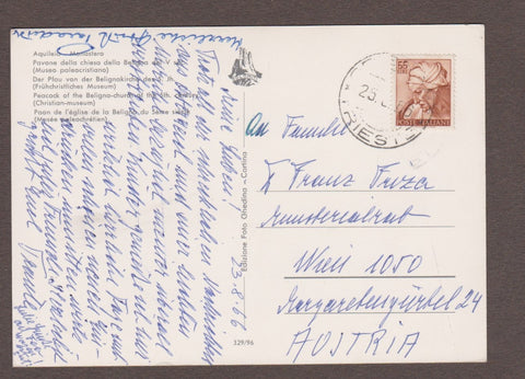 AK Aquileia - Monastero. Pavone della chiesa della Beligna del V sec. Gelaufen 1966. Großformat. Verlag: Foto Ghedina. Nummeriert: 329/96. Zustand: gut.