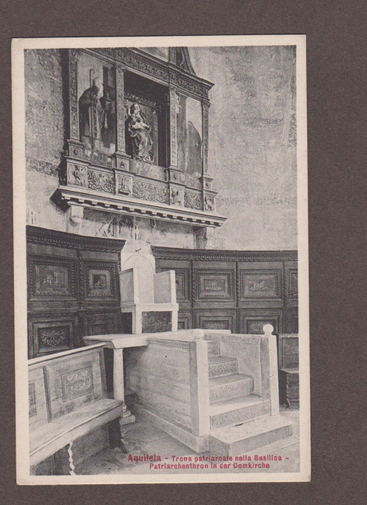 AK Aquileia - Trona patriarcale nella Basilica. (1910) Ungelaufen. Kleinformat. Verlag: Stengel & Co. Nummeriert: 36973. Zustand: gut, linke Ecken leicht angeknickt.