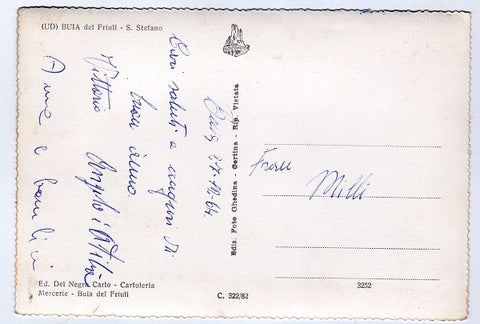 AK Buia del Friuli – S. Stefano. Ungelaufen, aber beschrieben. Großformat. Verlag: Ed. Del Negro Carlo – Cartoleria Buia del Friuli. Nummeriert: 322/82. Zustand: am linken Rand etwas berieben (siehe Scann), kleiner Knick links oben, sonst O.k.