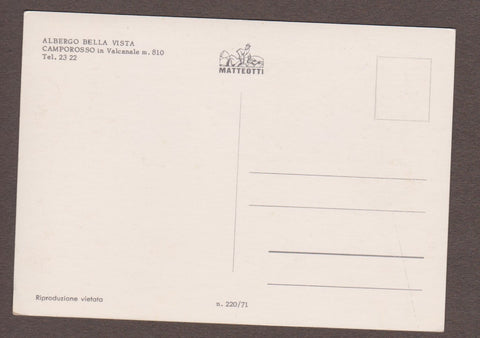 AK Camporosso in Valcanale. Albergo Bella Vista. Ungelaufen. Großformat. Verlag: Matteotti. Nummeriert: 220/71. Zustand: gut, untere Ecken angeknickt.