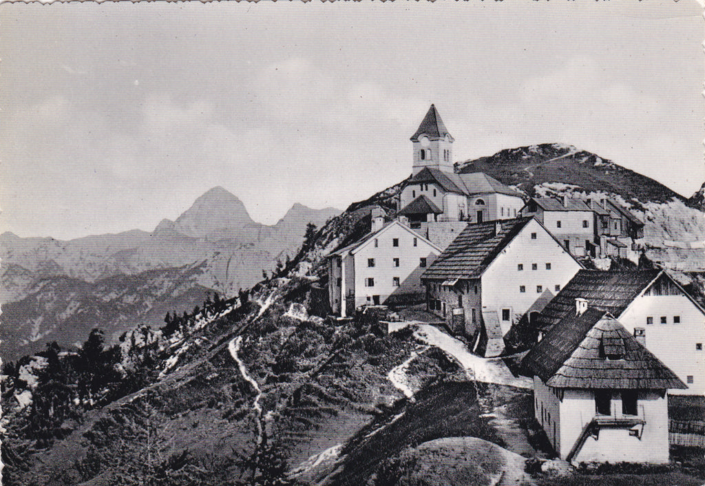 AK Camporosso Monte Lussari con M. Mangart. Ungelaufen. Großformat. Verlag: Moschitz. Zustand: gut, leichte Läsuren.