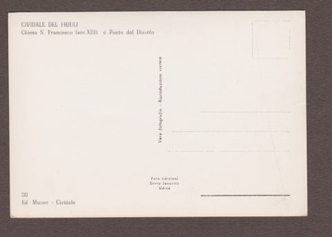 AK Cividale del Friuli - Chiesa S. Francesco e Ponte Del Diavolo. Ungelaufen. Großformat. Verlag: Muner. Nummeriert: 30. Zustand: gut, kleiner Knick oberhalb der Bildmitte.