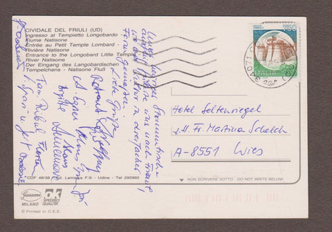 AK Cividale del Friuli. Ingresso al Tempietto Longobardo – Fiume Natisone. Gelaufen. Großformat. Verlag: Lamarca. Nummeriert: 48/38. Zustand: gut, rechtes unteres Eck leicht geknickt.