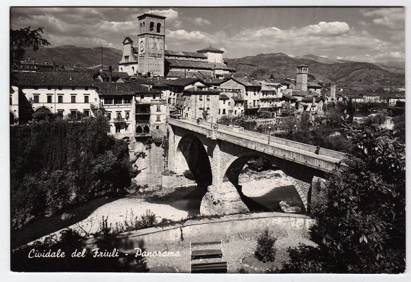 AK Cividale del Friuli – Panorama. Gelaufen 1957 in Este. Großformat. Verlag: Ediz. Foto Ducale. Zustand: Ecken leicht angestoßen, leicht zerkratzt, sonst O.k.