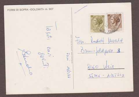 AK Forni di Sopra. Dolomiti. Gelaufen. Großformat. Verlag: Del Bianco. Zustand: obere Ecken geknickt, untere Ecken angeknickt.