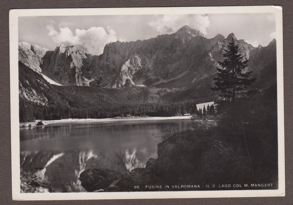 AK Fusine in Valromana – Il 2 Lago col M. Mangart. Ungelaufen. Großformat. Verlag: Baruzzi. Nummeriert: 86. Zustand: gut, Ecken angeknickt.