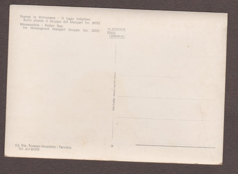 AK Fusine in Valromana - Il Lago inferiore. Sullo sfondo il Gruppo del Mangart. Ungelaufen. Großformat. Verlag: Moschitz. Nummeriert: 9. Zustand: leichte Randläsuren, leicht verzogen.