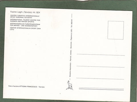 AK Fusine Laghi (Tarvisio) Centro Turistico Internazionale Sport Invernali ed estivi. Ungelaufen. Format: 15,5 x 11 cm. Verlag: Attisani. Zustand: Ecken leicht angeknickt, Knick am unteren Rand in der linken Hälfte.