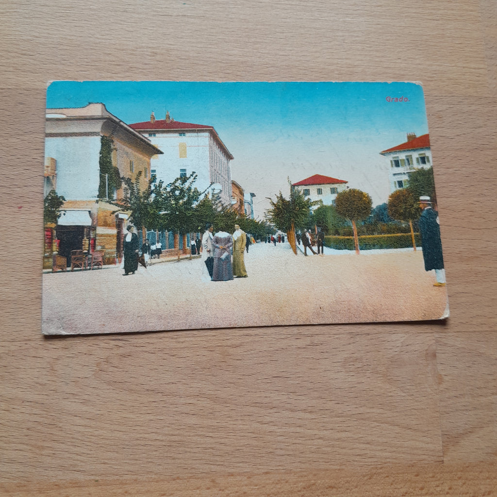 AK Grado. Gelaufen, aber Briefmarke wurde entfernt. Kleinformat. Zustand: gut, linkes unteres Eck geknickt.