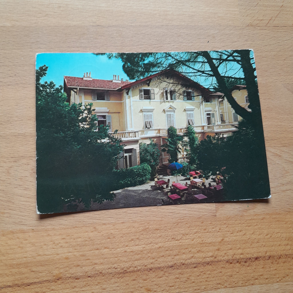 AK Grado – Pensione Ville Bianchi. Gelaufen. Großformat. Zustand: gut.