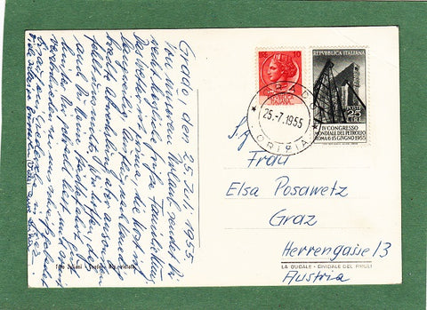 AK Grado – Panorama e Spiaggia Popolare. Gelaufen 1955 in Grado. Großformat. Verlag: Foto Zuliani. Zustand: linkes oberes Eck geknickt, sonst O.k.
