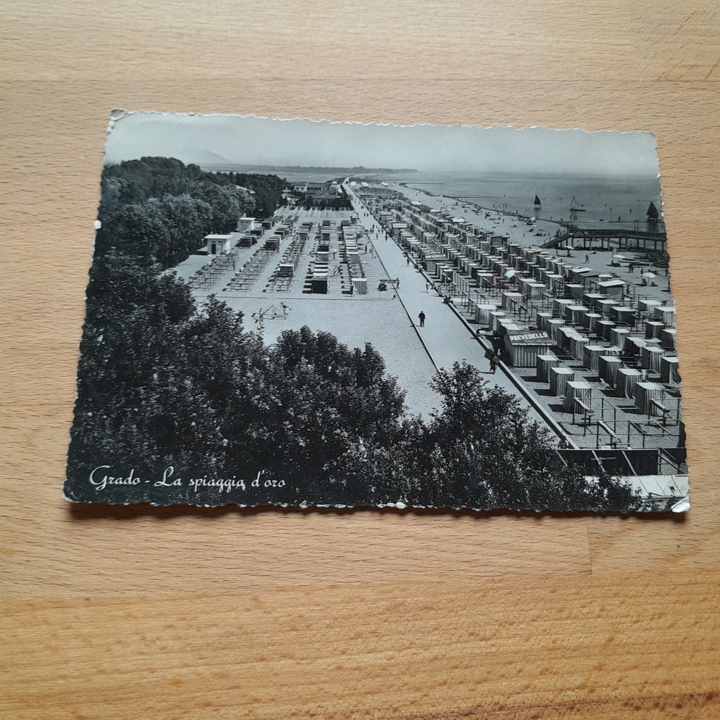 AK Grado. La Spiaggia d'oro. Gelaufen. Großformat. Nummeriert: 1221. Zustand: Ecken geknickt.