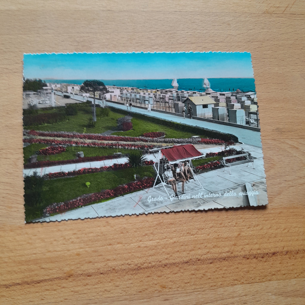 AK Grado - Giardini nell'interno della spiaggia. Gelaufen. Großformat. Nummeriert: 37. Zustand: gut.