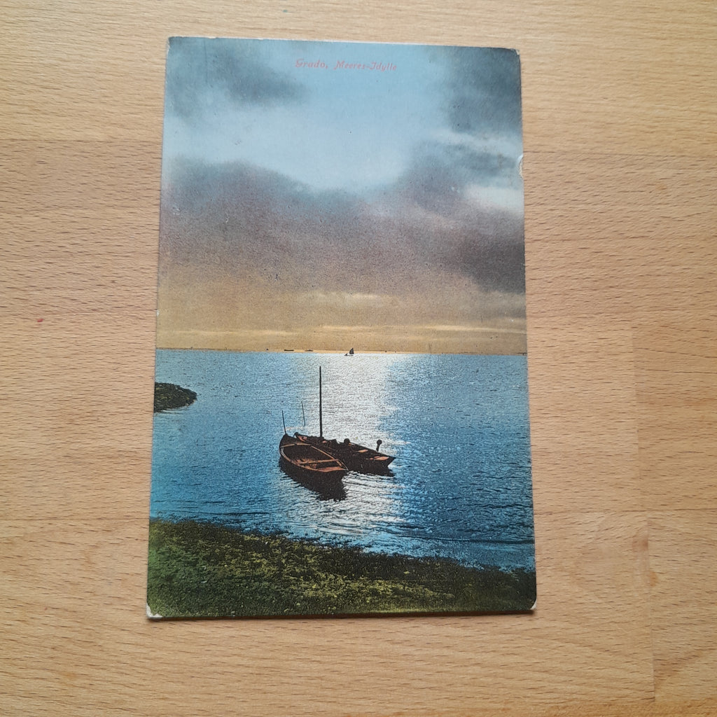 AK Grado. Meeres Idylle. Gelaufen, aber Briefmarke wurde entfernt. Kleinformat. Zustand: leicht bestoßen.