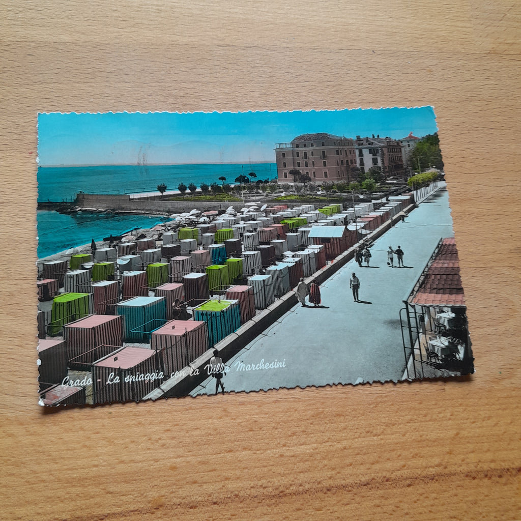AK Grado. La Spiaggia con la Villa Marchesini. Gelaufen. Großformat. Zustand: gut.
