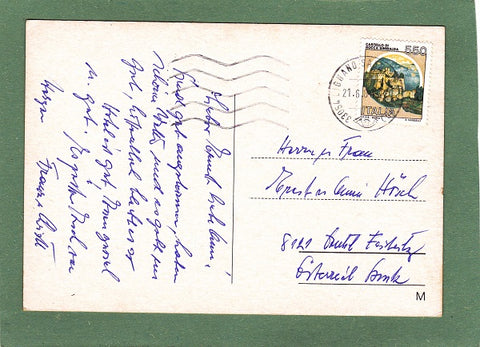 AK Grüße aus Lignano. Gelaufen 198? in Lignano Sabbiadoro. Großformat. Zustand: obere Ecken geknickt, untere Ecken und Rand leicht angestoßen.