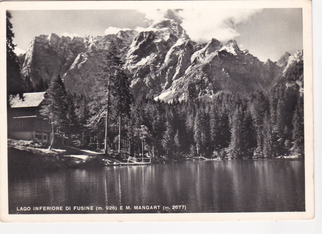 AK Lago Inferiore di Fusine e M. Mangart. Ungelaufen. Großformat. Verlag: Albergo Edelweiss. Zustand: gut, Ecken leicht angestoßen, Rückseite mit Albumspuren.