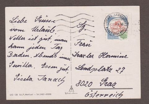 AK Lignano. Gelaufen. Großformat. Verlag: Mattiussi. Nummeriert: LIG 120. Zustand: Knick am rechten Rand ca. Mitte, leichter Knick über der rechten unteren Hälfte.