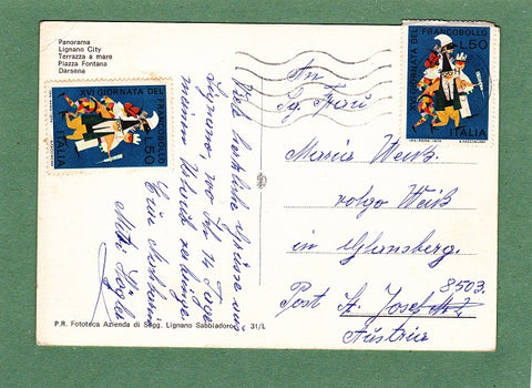 AK Lignano. Gelaufen 1975 in Lignano Sabbiadoro. Großformat. Verlag: P.R. Fototeca Azienda di Sogg. Lignano Sabbiadoro. Nummeriert: 31, Ecken geknickt bzw. angestoßen, Knick am oberen Rand beim rechten Eck.