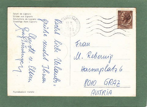 AK Lignano. Gelaufen 1968 in Lignano Sabbiadoro. Großformat. Zustand: gut, linke Ecken leicht angeknickt, andere Ecken und am Rand leicht bestoßen.