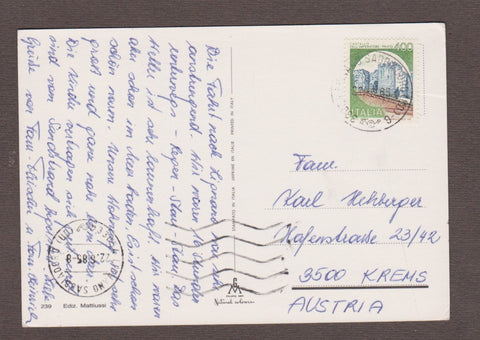 AK Lignano. Gelaufen 1985. Großformat. Verlag: Mattiussi. Nummeriert: 239. Zustand: rechtes oberes Eck doppelt geknickt, linke Ecken angeknickt.