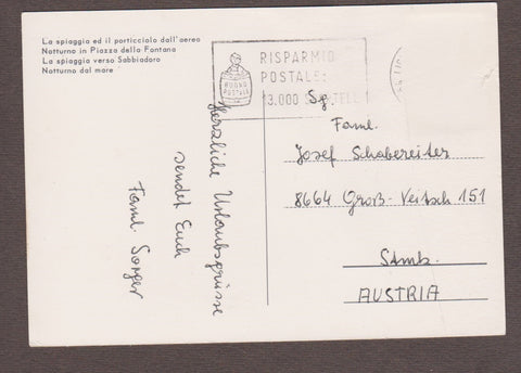 AK Lignano. Gelaufen, aber Briefmarke wurde entfernt. Großformat. Zustand: linke Bildhälfte gewölbt.